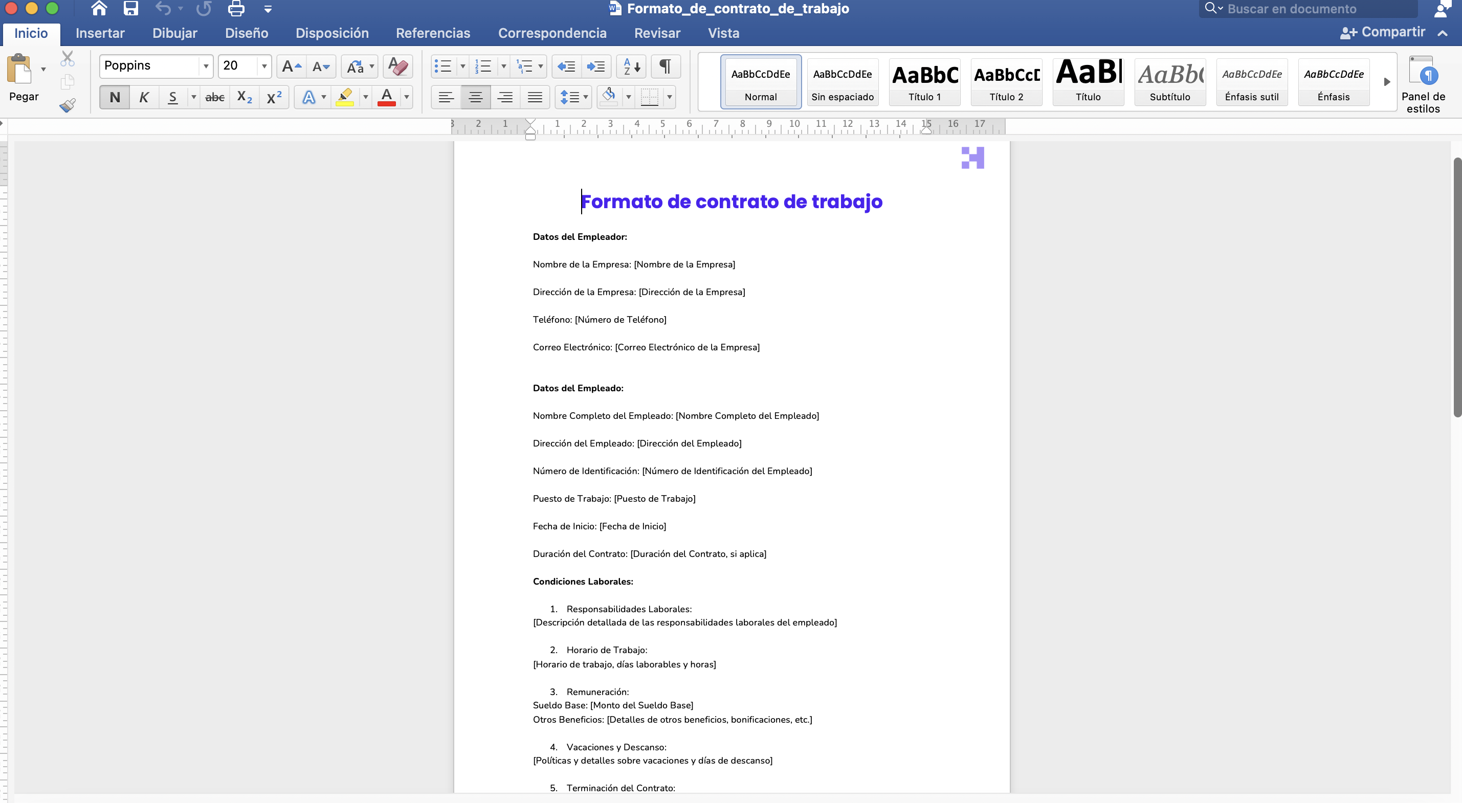 En pocas palabras, este contrato establece los derechos y obligaciones de ambas partes, así como los términos de empleo, la duración del contrato, la remuneración, las horas de trabajo, los beneficios, las responsabilidades laborales y las condiciones de terminación del contrato.