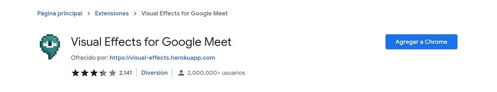 Finalmente, cerramos esta lista con una de las extensiones más populares de Chrome: Visual Effects for Google Meet.