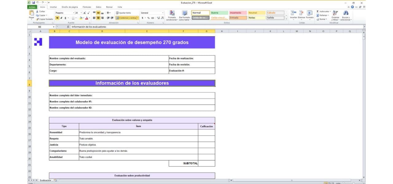 Plantilla de evaluación 360 en Excel para medir desempeño