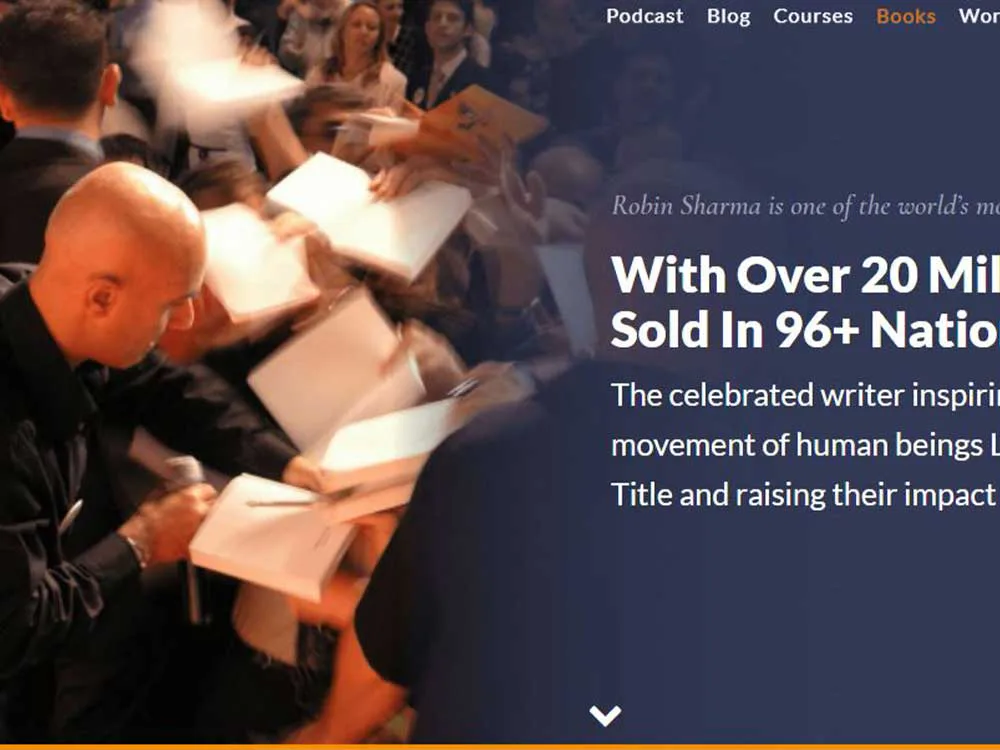 - Robin Sharma: Este escritor de autoayuda nos presenta una squeeze page donde podemos acceder a un manifiesto de forma gratuita. Dicho manifiesto pasó de ser de pago a ser gratuito para todas aquellas personas que desean ser parte de la comunidad de Robin Sharma.