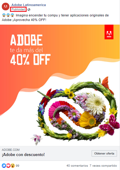 Publicidad en redes sociales: Adobe y su anuncio en Facebook.