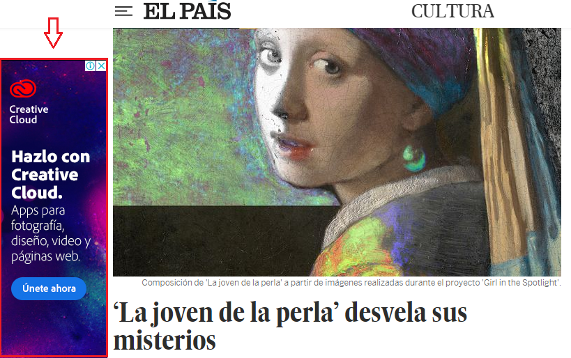 Publicidad en sitios web: Creative Cloud y su anuncio en la web del diario El País.