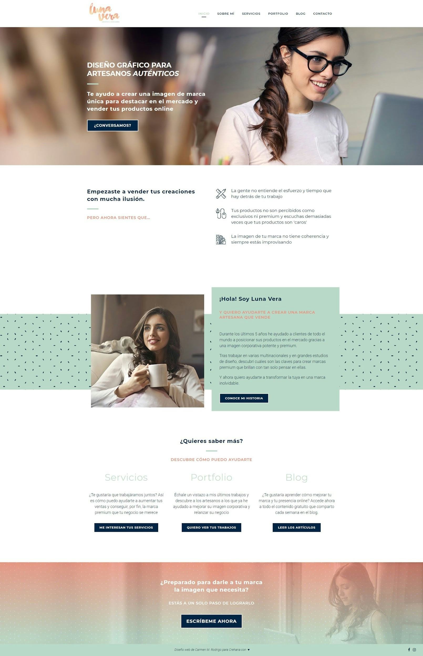 - Sobre mí - Generar empatía, conexión y confianza. Hacerle ver al visitante, que al otro lado del proyecto hay un personas reales que va a acompañarle durante todo el proceso.