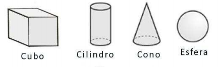 Por exemplo, uma jarra e uma lata de refrigerante são cilindros; uma laranja e uma bola são esferas; uma mesa de cabeceira e uma caixa são cubos; e um funil e um chapéu de festa são cones.