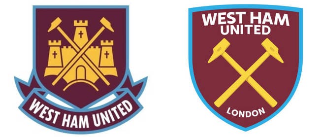 El equipo de “Chicharito” y Zabaleta tuvo una renovación parecida a la del PSG. Generando un escudo más icónico. El principal cambio fue que eliminaron las torres que representaban su antiguo estadio. Se modificó la tipografía del nombre del equipo. Se mantuvieron los simbólicos martillos que representan a la mano obrera de ese barrio londinense; por algo se le conoce como "Los Hammers" a este equipo.